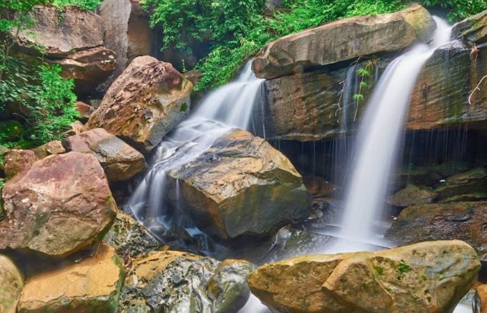 Champei Laang Ta Thong Waterfall is a scenic natural attraction located in Oddar Meanchey Province, northern Cambodia. Surrounded by lush forests and rocky terrain, the waterfall provides a peaceful spot for visitors to relax and enjoy nature.